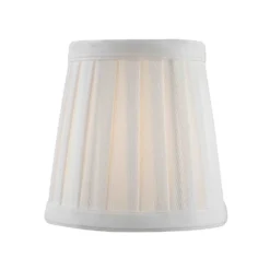 Clip-on lamp shade with silver string fabric. Top width = 3-1/2 x 3-1/2 inches, bottom width = 4-1/2 x 4-1/2 inches. silver string clip-on lamp shade. silver string fabric shade