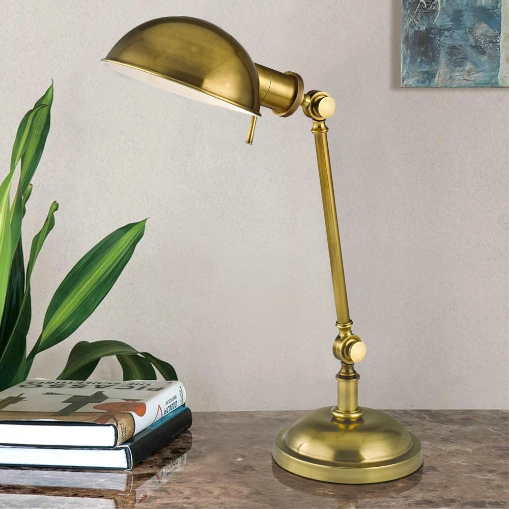 Transitional vintage brass 1-light table lamp.