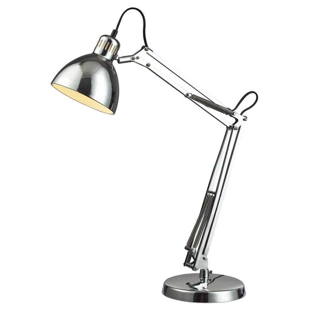 Modern chrome 1-light desk lamp.